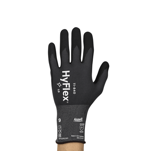 Sağlam aşınma performansı, yüksek konfor ve el becerisinin daha iyi kullanılabilmesi arasında sağladığı denge ile HyFlex® 11-840 çeşitli işler arasında geçiş yapan çalışanlar için ideal bir çözümdür.